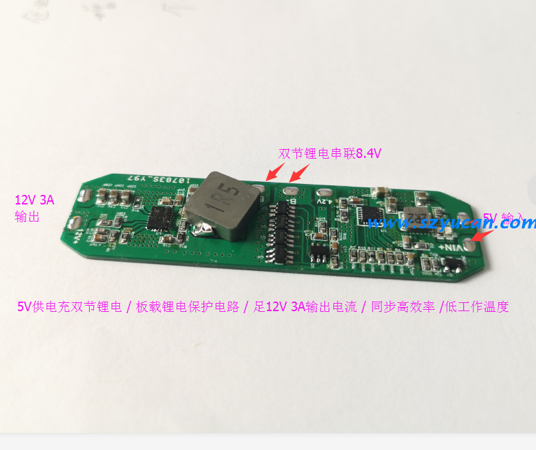 詳細(xì)信息5V輸入給雙節(jié)8.4V串聯(lián)鋰電充電+同步高效升壓輸出12V3A電源板PCBA...