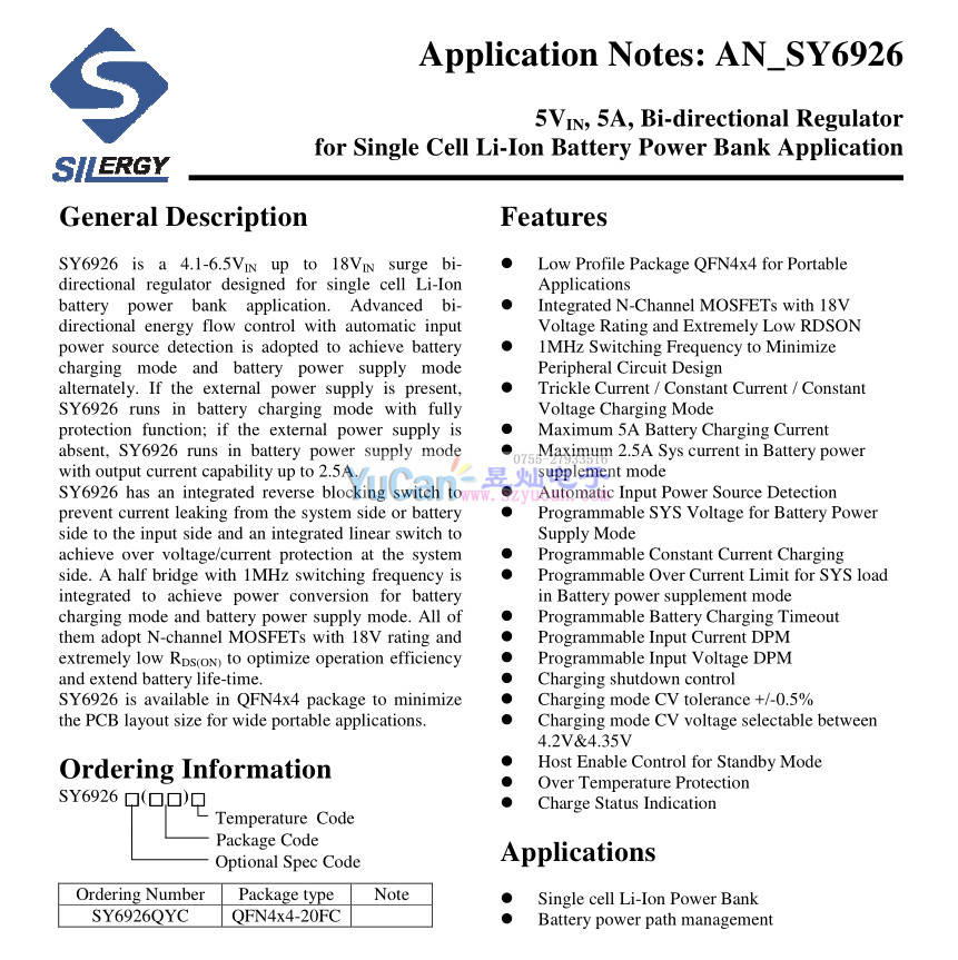 SY6926QYC QFN4*4-20