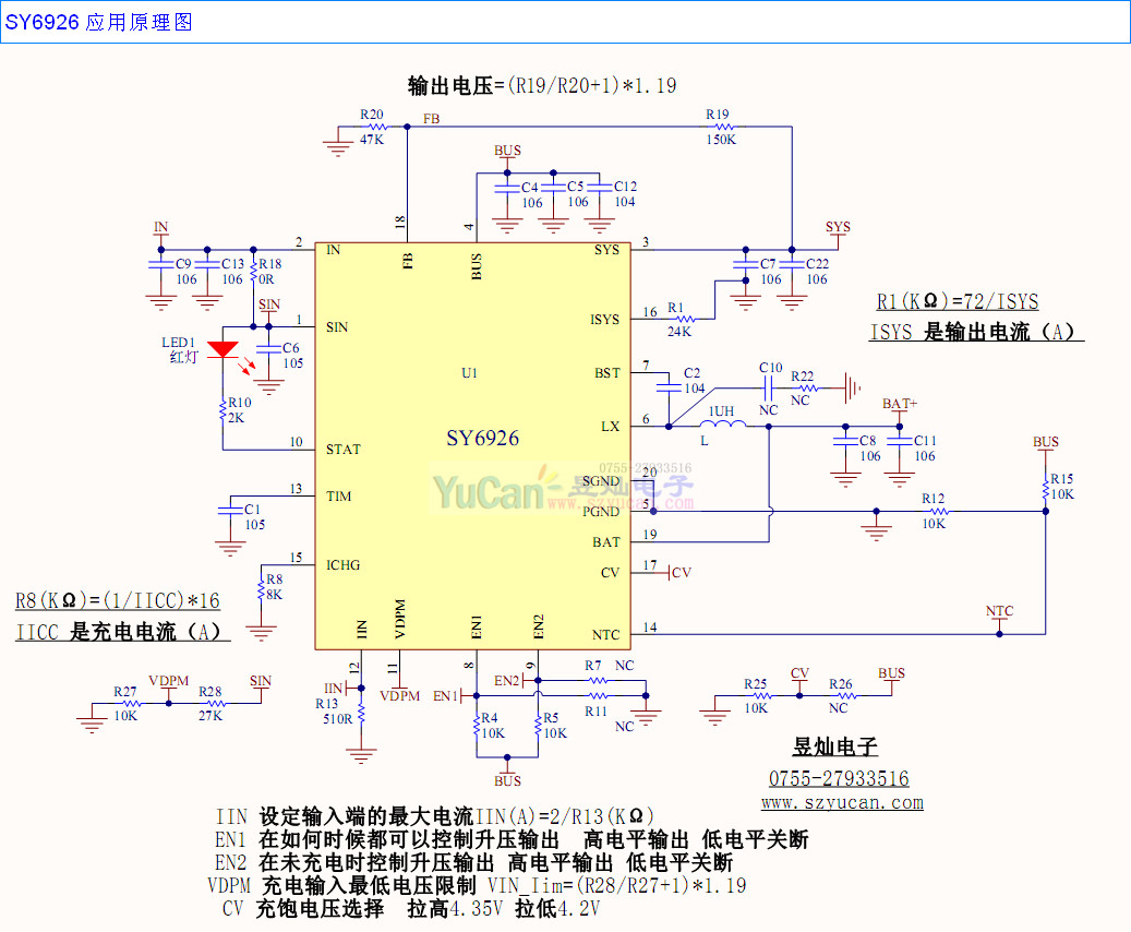 SY6926 內(nèi)置18V耐壓mos適應(yīng)快充電路 充電最大5A 放電2.5A 兼容4.2V 4.35V電池 具輸出限流 EN控制功能 單燈指示的移動(dòng)電源充電寶IC